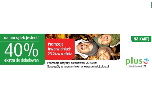 Klienci, którzy w dniach 23-24 września doładują swoje konto przez strony internetowe oraz za pośrednictwem bankowości internetowej, otrzymają bonus 40% wartości doładowania do wykorzystania na wszystkie dostępne usługi telekomunikacyjne: rozmowy, SMSy, MMSy, Internet.