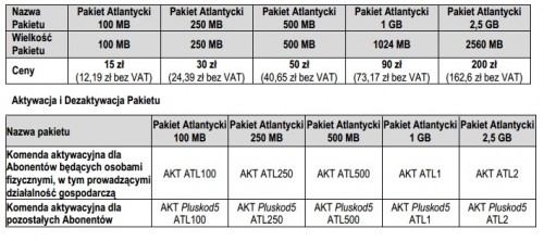 W ramach Promocji „Pakiet Atlantycki – tani Internet w Roamingu”, Abonent może zlecić w Okresie Promocyjnym aktywowanie dla numeru objętego Umową promocyjnych pakietów transmisji danych w krajach Unii Europejskiej oraz Norwegii, Islandii, Lichtensteinu, Szwajcarii i USA.