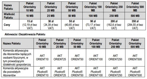 W ramach Promocji „Pakiet Orientalny – tani Internet w Roamingu”, Abonent może zlecić w Okresie Promocyjnym, aktywowanie dla numeru objętego Umową promocyjnych pakietów transmisji danych w roamingu międzynarodowym w: Białorusi, Chinach, Egipcie, Hong Kongu, Izraelu, Kambodży, Kazachstanie, Nowej Zelandii, Korei Południowej, Rosji, Tajlandii, Tajwanie, Turcji, Ukrainie, Wietnamie, oraz w sieci operatora Softbank Japonia.