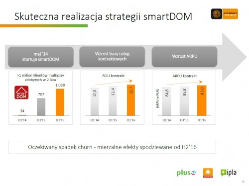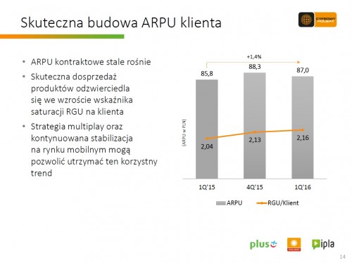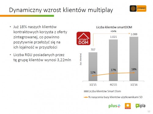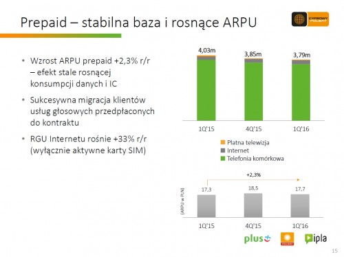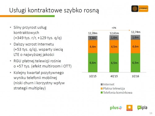 Na dzień 31 marca 2016 roku Polkomtel, operator sieci Plus świadczył ponad 10,0 mln usług telefonii komórkowej w modelu kontraktowym i przedpłaconym i blisko 1,9 mln usług dostępu do szerokopasmowego Internetu – poinformowała Grupa Cyfrowy Polsat.