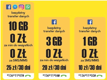 - Facebook za darmo w każdym pakiecie,