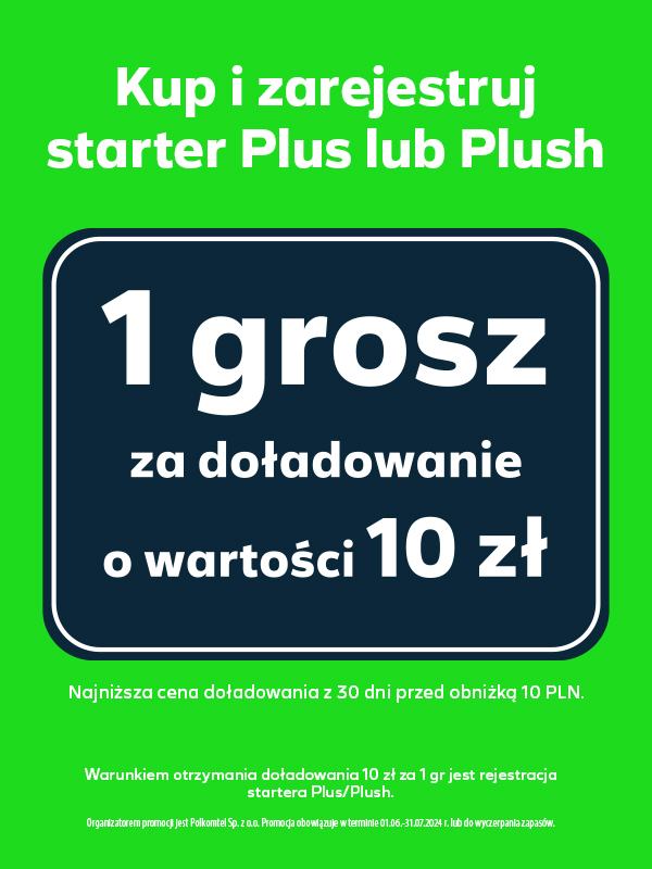 Kupując starter Plusa lub Plusha Na Kartę na stacji MOL Polska, po jego zarejestrowaniu, przyznane zostanie doładowanie o wartości 10 zł za symboliczny 1 gr. Otrzymane 10 zł można dowolnie wykorzystać np. na zakup pakietów lub skorzystanie z aktualnych promocji. Wartą uwagi ofertą jest pakiet 400 GB ekstra w Plus Na Kartę oraz 500 GB ekstra w Plush Na Kartę, które można aktywować wyrażając zgodę na otrzymywanie treści marketingowych.
