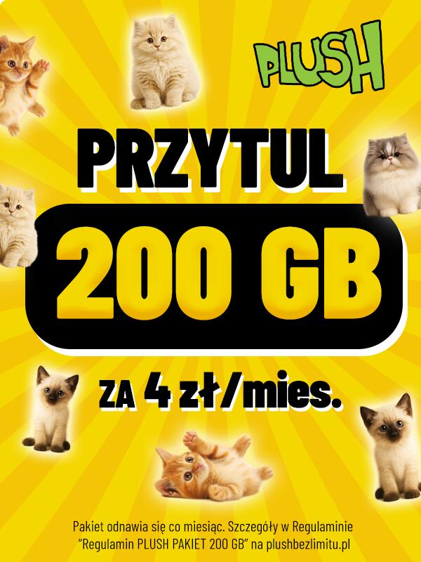 Tak, dobrze czytasz – 200 GB za 4 zł. Miesięcznie. Bez haczyków. Dlaczego? Ano dlatego, że Plush wie, że w życiu liczą się proste przyjemności – jak przytulanie kotków czy scrollowanie do późnej nocy. Dlatego daje swoim użytkownikom wielki pakiet danych, żeby mogli oglądać, streamować i udostępniać bez końca.