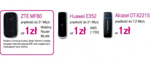 W przypadku każdej taryfy Operator oferuje modemy od 1 zł, w tym modem z funkcją routera, czyli pozwalający połączyć kilka urządzeń.