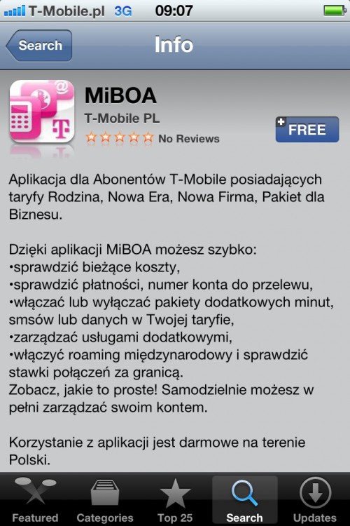 T-Mobile udostępnił aplikację „Mobilne Internetowe Biuro Obsługi Abonenta” (MiBOA) dla systemu iOS.