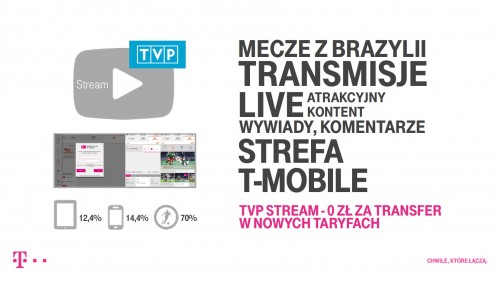 W zależności od taryfy klienci otrzymają czasowo lub na cały okres trwania umowy możliwość korzystania z usług dodatkowych. Nowością w sieci T-Mobile jest streaming muzyki oferowany we współpracy z WIMP, czyli bazą ponad 23 mln utworów. Klienci będą mogli również obejrzeć na swoich urządzeniach wszystkie mecze najbliższego mundialu w Brazylii, a także specjalne materiały dodatkowe przygotowane przez TVP. T-Mobile Polska uzyskał od Telewizji Polskiej wyłączne prawo do ich transmisji na urządzeniach z kartą SIM T-Mobile (w sieciach 3G / LTE). TVP Stream będzie dostępny dla klientów za 0 złotych w nowych taryfach. Nowa oferta będzie dostępna od 5 czerwca br.