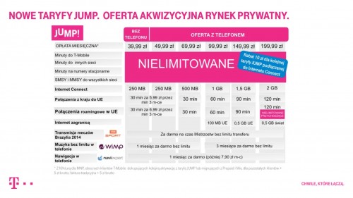 T-Mobile Polska, zgodnie z planem przedstawił wczoraj swoje plany taryfowe związane z komercyjnym wykorzystaniem technologii LTE. Nowa oferta nazywa się JUMP. Jak wygląda oferta?