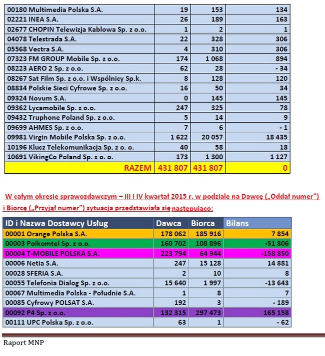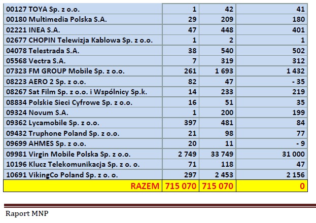 Pełny raport przenośności numerów w artykule:UKE – od czerwca przeniesiono 717 236 numerów. Play i Orange na plusie