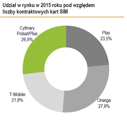 Z opublikowanych przez Operatorów raportów wynika, że liderem rynku mobilnego Polsce pod względem posiadania kart SIM jest Orange. P4, operator sieci Play, w pierwszym kwartale 2015 r pozyskał najwięcej klientów, a T-Mobile jest jedynym, który poinformował o wyłączeniu 3,838 mln kart SIM.