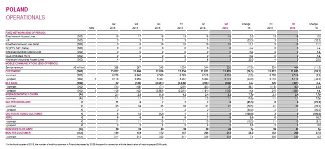 T-Mobile Polska na koniec czerwca 2016 roku obsługiwał 11,635 miliona klientów. Baza klientów usług abonamentowych wyniosła 6,516 miliona, a usług przedpłaconych 5,119 miliona. Liczba przyłączeń netto w bazie klientów kontraktowych w drugim kwartale 2016 r. poprawiła się, zarówno w porównaniu do ubiegłego roku, jak i do poprzedniego kwartału. Osiągnięty obecnie przez T Mobile Polska wynik jest najlepszym uzyskanym przez Spółkę od czwartego kwartału 2013 roku. W tym samym czasie baza