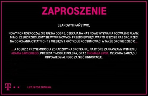 T-Mobile Polska rozsyła zaproszenia na spotkanie prasowe, w którym operator ma podsumować ostatnie 12 miesięcy opowiedzieć o przygotowanych nowościach.
