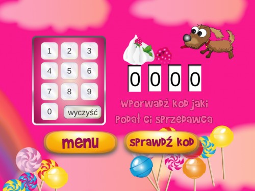 Cukierowo to gra zręcznościowa dedykowana dzieciom, polegająca na ćwiczeniu refleksu poprzez wskazywanie maskotce owoców do spożycia.