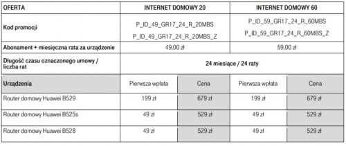 Oferta jest przeznaczona dla dotychczasowych klientów internetu mobilnego. Można przedłużyć umowę na ofertę domową.