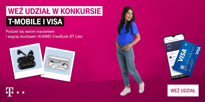 Jaki jest temat pracy konkursowej? W zgłoszeniu należy pokazać, w jaki sposób Visa i T‑Mobile pomagają na co dzień w spełnianiu marzeń lub realizowaniu swojej pasji. Autorzy najciekawszych prac zostaną nagrodzeni słuchawkami Huawei FreeBuds BT Lite. Dziennie do wygrania jest aż 49 zestawów konkursowych, zatem szanse na wygraną są bardzo wysokie.