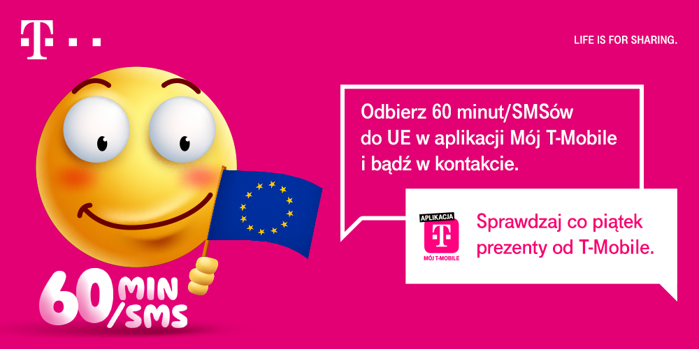 Osoby zainteresowane dodatkiem mogą odebrać go od piątku 15 maja do niedzieli 17 maja do końca dnia w aplikacji „Mój T-Mobile”. Bezpłatne 60 minut lub SMS-y na 30 dni do krajów Unii Europejskiej zostaną aktywowane w ciągu 72 godzin od momentu włączenia promocji w aplikacji. Oferta jest dostępna zarówno dla klientów korzystających z abonamentu w T-Mobile, jak i dla użytkowników ofert MIX oraz na kartę.