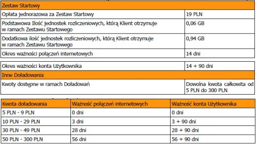 oferta do wykorzystania tylko na start. po 14 dniach do piachu. brak bonusów, 3 gr za 100 kb i rozliczenie z dokł. do 100 kb. kiedyś wkurzyło mnie takie rozliczanie. korzystając z nawigacji po 10 połączeniach i ściągnięciu za każdym razem po 10 kb z pakietu ubyło mi 1 Mb. jak dla mnie, najlepszy jest GA z rozliczeniem 1kb i wyborem pakietów. zamiast modemu (prawie) zawsze można wykorzystać telefon. nie mówiąc o tym, że można normalnie zadzwonić.