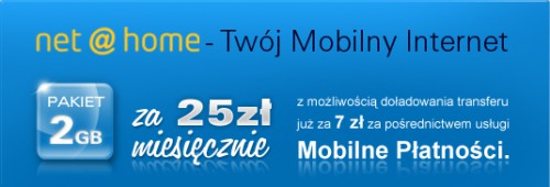 Korzystając z aktualnej oferty Promocyjnej net@home dla Abonentów Mova, zamiast Darmowego Internetu za reklamy, można wybrać Pakiet 500 MB za 12 zł miesięcznie, bądź Pakiet 2 GB w promocyjnej cenie 25 zł miesięcznie, dodatkowo modem USB dostępny już od 1 zł. Operatorem net@home jest InItTec. Zasięg sieci komórkowej Plus.