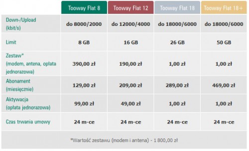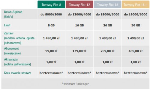 Cennik usługi Internet Satelitarny Tooway – dzierżawa sprzętu: