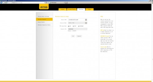 6. Wchodzimy w zakładkę wireless (wireless security) i tam ustawiamy nazwę sieci jaka ma być oraz czy sieć ma być zabezpieczona hasłem (wireless security setup)