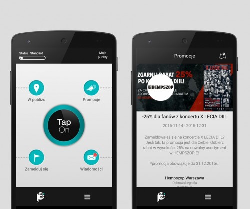 Podczas koncertu z okazji X-lecia kultowej marki odzieżowej DIIL został przeprowadzony konkurs z użyciem TapOn. Mogł w nim wziąć udział każdy z uczestników imprezy. Wystarczyło posiadać w telefonie aplikację TapOn lub pobrać ją po wejściu na imprezę i odpowiedzieć na kilka prostych pytań. Dla zwycięzców przygotowano sto koszulek marki DIIL z serii limitowanej oraz rabaty do wykorzystania w sklepach sieci Hempszop.
