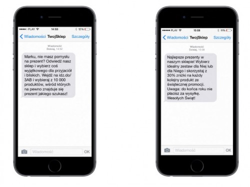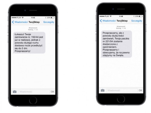 Innym sposobem na wykorzystanie SMS-ów jest informowanie klientów o statusie złożonego przez nich zamówienia bądź o terminie dostawy. – SMS marketing w sklepie internetowym podczas gorącego dla całego sektora e-commerce czasu przedświątecznego może wspomóc działania firm na dwa sposoby – mówi Marcin Rutkowski, PR manager w i-systems. – W pierwszym z nich wiadomości tekstowe wykorzystujemy do powiadamiania o aktualnym stanie zamówienia. Wiadomości możemy wysłać więc w momencie potwierdzenie wpłaty oraz wysłania paczki. Wtedy klienci wiedzą, na jakim etapie realizacji jest ich zamówienie i czują dzięki temu większy komfort zakupów.