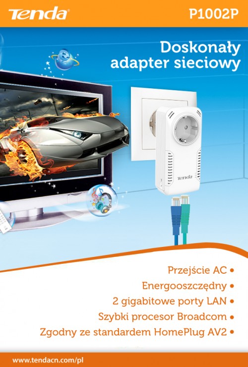 Tenda P1002P, adapter sieciowy zgodny ze standardem HomePlug AV2