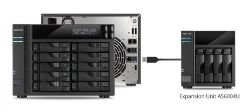 Urządzenie AS6004U posiada cztery kieszenie dla dysków twardych o pojemności do 10 TB każdy. Dzięki temu pojedynczy moduł rozszerzający udostępnia 40 TB surowej przestrzeni, co w konsekwencji pozwala poszerzyć pojemność jednego urządzenia NAS od 80 do nawet 120 TB. Przechowywane dane mogą być automatycznie szyfrowane algorytmem AES 256-bitowym. Ponadto AS6004U wspiera konfigurację dysków w trybie RAID.