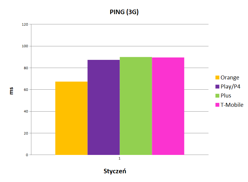 T-Mobile oprócz dobrego wyniku w kategorii szybkości pobierania danych, zgarnął także laur za najniższą wartość ping