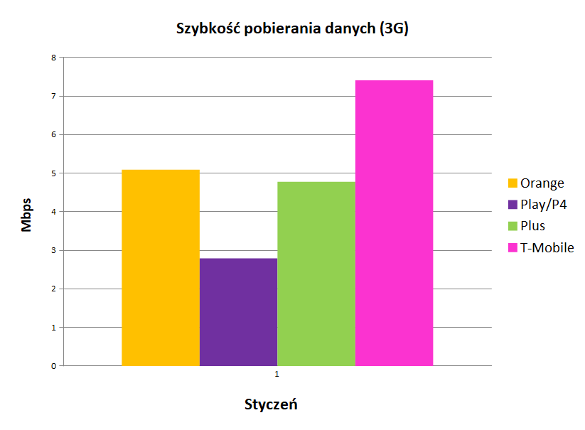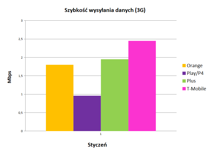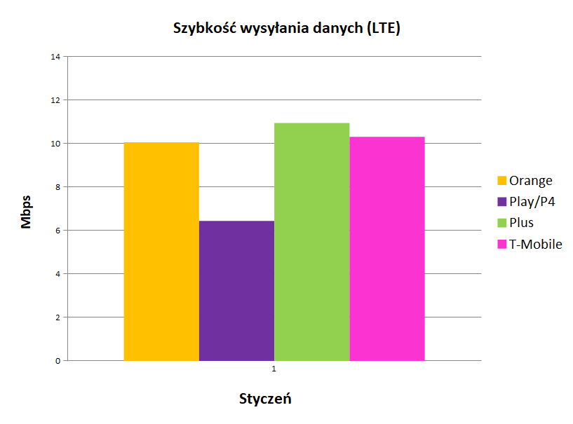 Orange, która umożliwiała wysyłanie plików ze średnią prędkością 10,06 Mb/s. Od czołówki wyraźnie odstawał Play.