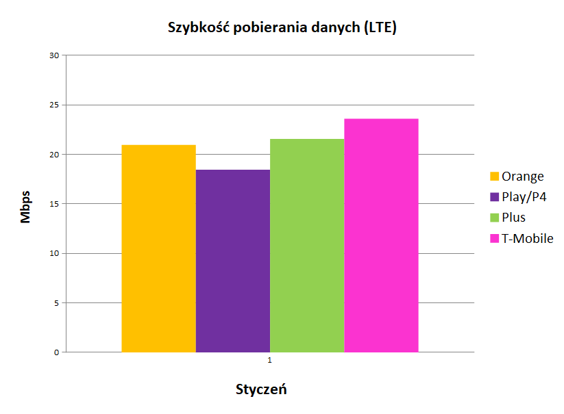 wyszedł na prowadzenie, jeżeli chodzi o średnią szybkość pobierania danych (23,6 Mb/s). Na drugim miejscu uplasował