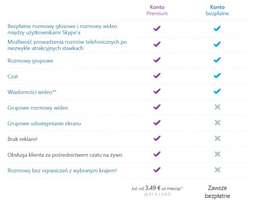 Konto Skype Premium, pozwala prowadzić rozmowy bez ograniczeń z wybranym krajem oraz uzyskać dostęp do wyjątkowych funkcji, w tym grupowych rozmów wideo.