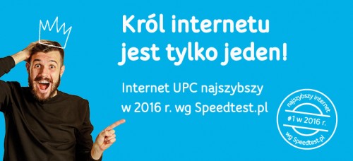 „Król internetu jest tylko jeden!” – to hasło kampanii, z którą rusza dziś UPC Polska. Według rankingu szybkości internetu zamieszczonego na portalu SpeedTest.pl, usługa internetu od UPC okazała się bezkonkurencyjna w 2016 roku.