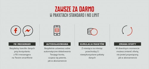 – Przy okazji wprowadzenia nowych taryf chcemy też zwrócić uwagę na kompleksowość naszej oferty. Autodoładowania, sprawny i niezawodny Help Desk czy niewykorzystany internet, który pod warunkiem terminowego doładowania konta przechodzi na kolejne miesiące – to wszystko sprawia, że możemy konkurować nie tylko z ofertami na kartę, ale i na abonament. Gwarantujemy najlepsze obecnie taryfy no limit, wygodę i niezawodność – dodaje Bartek Grabowski.