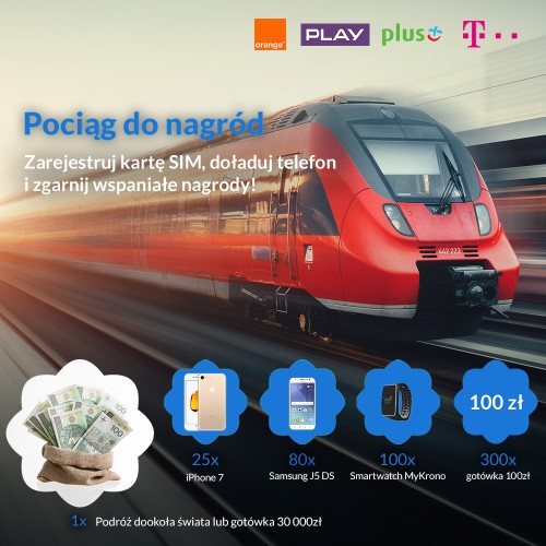 Czujecie pociąg do nagród? Dobrze się składa: zarejestrujcie kartę SIM, doładujcie T-Mobile przez Internet lub aplikację mobilna kwotą min. 10 zł (Lista banków i serwisów)