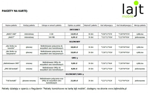 Regulamin usługi „Pakiety komórkowe w usłudze lajt mobile na kartę”: Tutaj