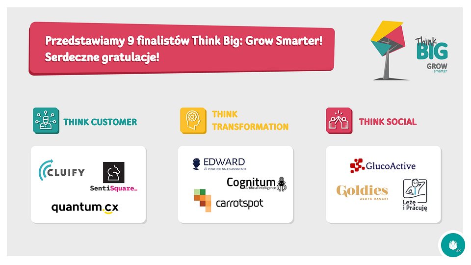 Jury UPC Polska THINK BIG: Grow Smarter wybrało 9 finalistów tegorocznej edycji programu dla innowacyjnych przedsiębiorców i innowatorów społecznych.