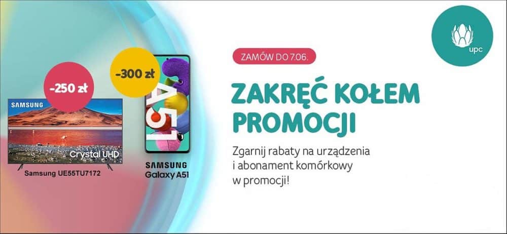 Nowoczesne smartfony marki Samsung w ramach promocji dostępne będą z następującymi rabatami: Samsung Galaxy A20e – 50 zł od bazowej ceny 749 zł, Samsung Galaxy A40 – 150 zł (od ceny 1149 zł), zaś nowość w ofercie UPC Polska, Samsung Galaxy A51 klienci zakupią w cenie niższej aż o 300 zł (cena wyjściowa – 1699 zł).