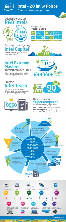 Przez tych dwadzieścia lat Intel nie tylko oferował Polakom najnowsze technologie, które czyniły ich życie, pracę i zabawę wygodniejszymi, ale też prowadził w naszym kraju badania nad tworzeniem nowych innowacyjnych rozwiązań, wdrażanych później na całym świecie. Jednocześnie firma aktywnie i stale angażowała się w działania z pozoru oddalone od trzonu jej biznesu.
