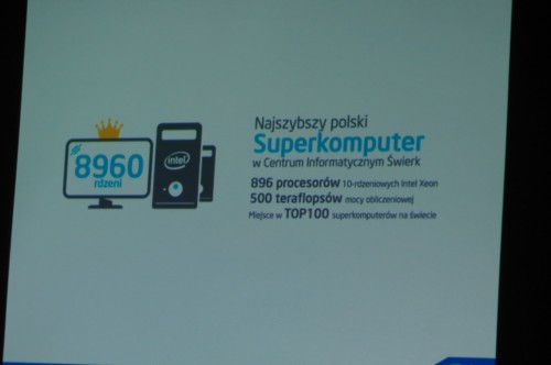 Intel angażuje się w Polsce w rozwój nauki i technologii nie tylko w ścianach swojego laboratorium. W oparciu o procesory Xeon powstaje najszybszy superkomputer w Polsce. W Centrum Informatycznym Świerk budowana jest maszyna z 896 10-rdzeniowymi układami. Jednostka osiągnie moc obliczeniową 500 teraflopsów i wejdzie do rankingu Top 100 najbardziej wydajnych superkomputerów świata.