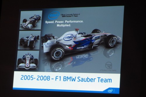 Nie można zapomnieć również o wsparciu teamu Formuły 1 BMW Sauber z Robertem Kubicą w składzie. Intel nie tylko współpracował z BMW w zakresie sponsoringu, lecz także wniósł do partnerstwa technologie, które pozwoliły rozwinąć proces produkcji samochodów i rozwiązań multimedialnych stosowanych w systemach pokładowych.