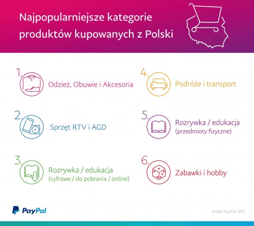 Podobnie jak w przypadku krajowych e-zakupów, kupujący transgranicznie w Polsce są przede wszystkim zainteresowani modą i elektroniką, rozrywką online, edukacją, podróżami, zabawkami oraz produktami związanymi z hobby.