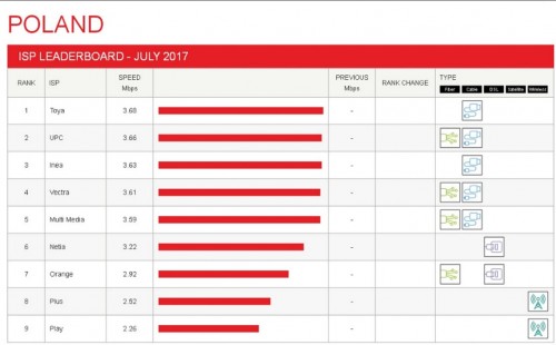 Polska znajduje się na 30 miejscu notowania jakości łączy internetowych za lipiec 2017r.