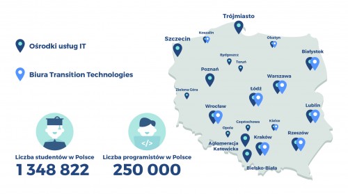 – Potencjał dla naszej działalności znaleźliśmy także m.in. w Białymstoku, Olsztynie, czy Kielcach i te miasta, choć na dalszych pozycjach, również są już uwzględniane w badaniach. W tych miejscach inwestycje dopiero się rozpoczynają, jednak cieszymy się, że możemy kontynuować tu swoją działalność jako jedni z nielicznych. Rozwój mniejszych miast, to w dłuższej perspektywie rozwój całej naszej gospodarki, a ta wizja jest zgodna z wizją Grupy Kapitałowej Transition Technologies – dodaje Łukasz Wójcik.