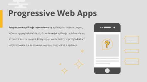 Dzięki zaawansowaniu technologii i siły obliczeniowej, strony internetowe działają jak pełnoprawne programy. Progressive Web Apps, czyli progresywne aplikacje internetowe, nie muszą być instalowane na dysku – działają naturalnie w przeglądarce. Bez długiego ładowania kolejnych podstron i ze wszelkimi wygodami korzystania z aplikacji.