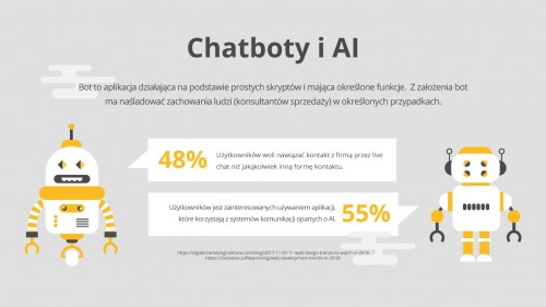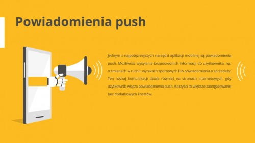 Możliwość wysyłania bezpośrednich informacji do użytkownika, czyli pushów, np. o zmianach w ruchu, wynikach sportowych lub obniżce cen zadomowiła się już na wielu polskich stronach internetowych. Korzyści? Większe zaangażowanie użytkowników bez dodatkowych kosztów. – Zmienia to poniekąd paradygmat poruszania się w internecie. To nie użytkownik wysyła zapytanie. On dostaje od serwera odpowiedź na to, o co dopiero chciałby zapytać – tłumaczy Jacek Tchórzewki, ekspert Coders Lab. Inny model wykorzystują boty – aplikacje działające na podstawie prostych skryptów i mające określone funkcje – które w oparciu o sztuczną inteligencję (AI) zastępują np. internetowych konsultantów sprzedaży.