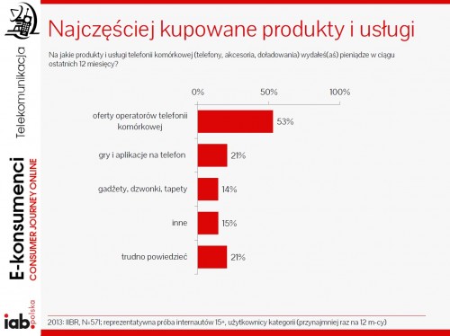 Za e-konsumentów przyjęto wszystkich internautów w wieku min. 15 lat, którzy wydali pieniądze (w internecie lub poza nim) na którekolwiek z badanych produktów lub usług, przynajmniej raz na 12 miesięcy.