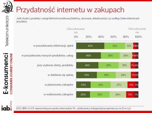 Wyniki badania „E-konsumenci (Consumer Journey Online)”, zrealizowanego przez IAB Polska, ukazują zasadniczą rolę internetu w procesie zakupowym produktów i usług z branży telekomunikacyjnej. To podstawowe źródło wiedzy na temat telefonów, akcesoriów i ofert operatorskich.