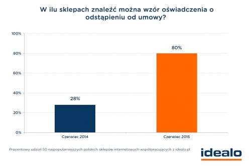 W ciągu roku większości sprzedawców udało się wywiązać z tego obowiązku. Według danych zebranych w tych samych sklepach, wzór oświadczenia o odstąpieniu od umowy sprzedaży znaleźć można już w 80% przypadków. Jest to niebagatelny wzrost o 52%. Można dopatrywać się tu znacznego ułatwienia dla klientów. Wypełnienie odpowiednich pól formularza jest znacznie łatwiejsze niż własnoręczne tworzenie osobnego dokumentu.