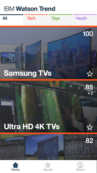 W odróżnieniu od innych zestawień najpopularniejszych produktów, IBM Trend App na bieżąco analizuje dane i przewiduje, czy popularność danego produktu będzie rosnąć czy spadać, a także dostarcza kontekst – dlaczego niektóre produkty i marki zyskują (lub tracą) w oczach klientów. aplikacja dostarcza codzienną porcję danych o 100 topowych produktach z trzech najczęściej wybieranych przez konsumentów kategorii – elektroniki, zabawek i fitness.