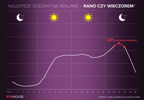 Polscy internauci częściej klikają w reklamy online i dokonują zakupów w internecie w dni powszednie, niż w weekendy – najchętniej we wtorki po godzinie 20.00. Jak pokazują analizy danych kampanii prowadzonych przez firmę RTB House na ponad 40 rynkach, podobne zachowania zakupowe charakteryzują internautów za granicą, gdzie najwięcej konwersji notuje się we wtorki i środy, a najmniej w soboty. Szczególnie dużym zainteresowaniem użytkowników cieszą się kreacje wyświetlane w godzinach wieczornych.